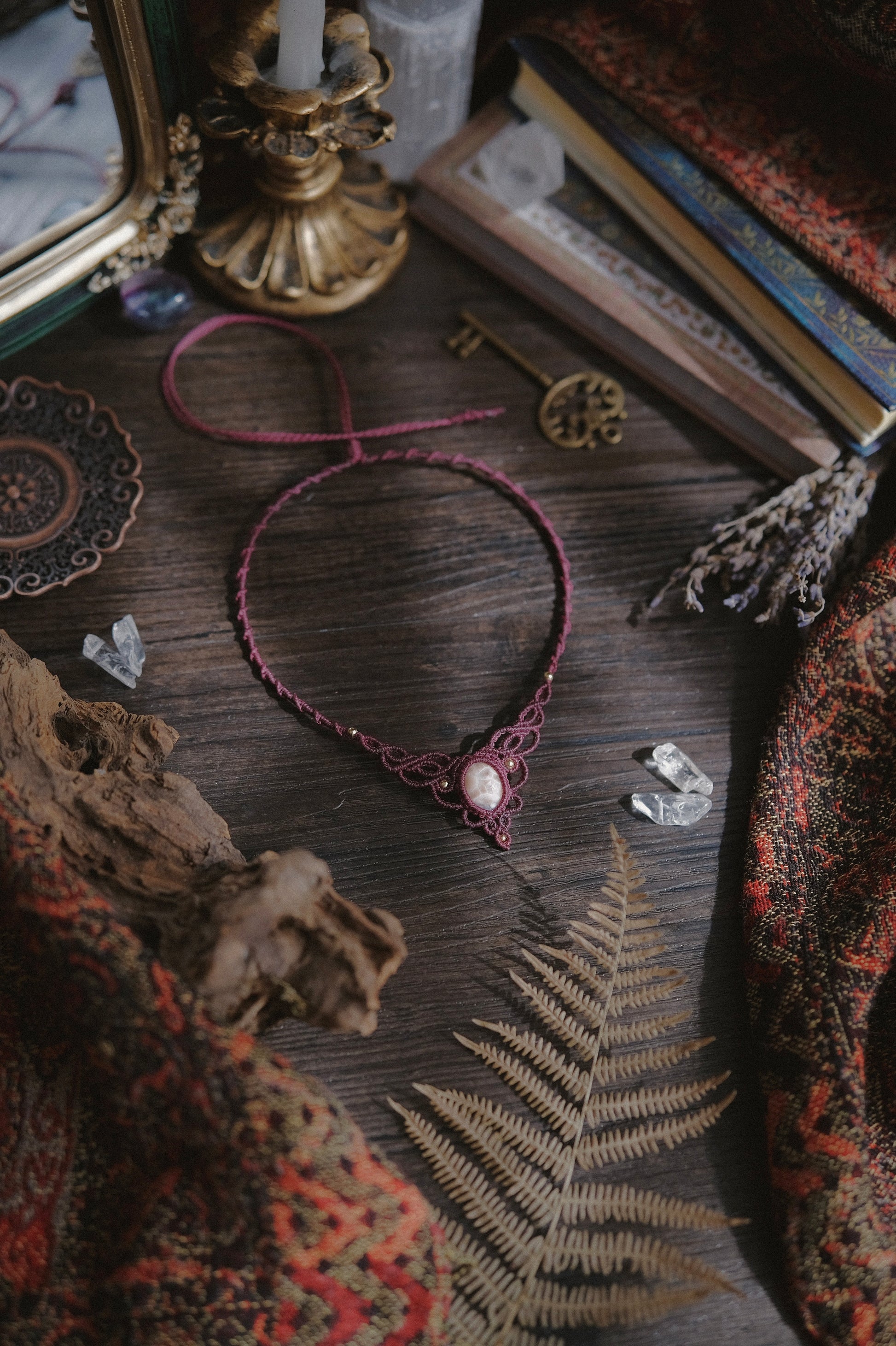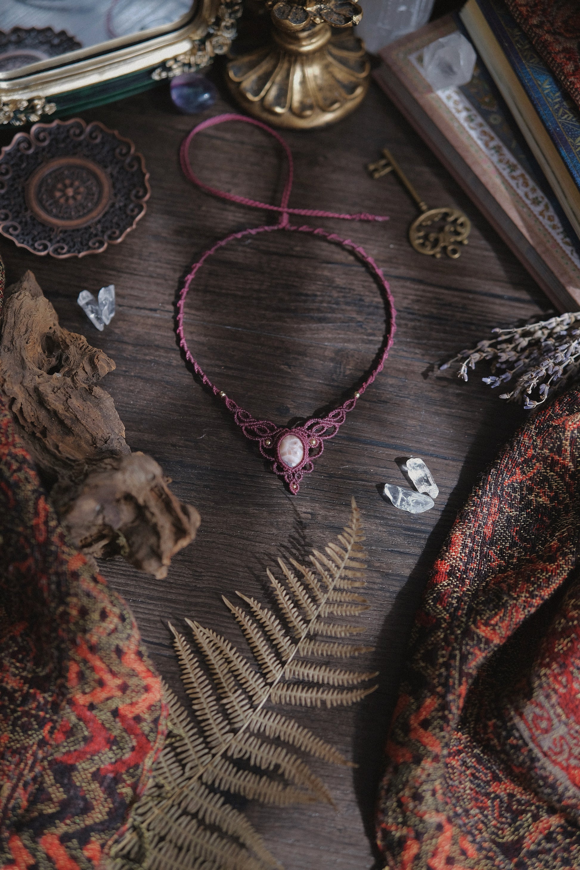 Girocollo modello ‘Silene’ realizzato interamente a mano con la tecnica del macramè, con pietra naturale di Thomsonite