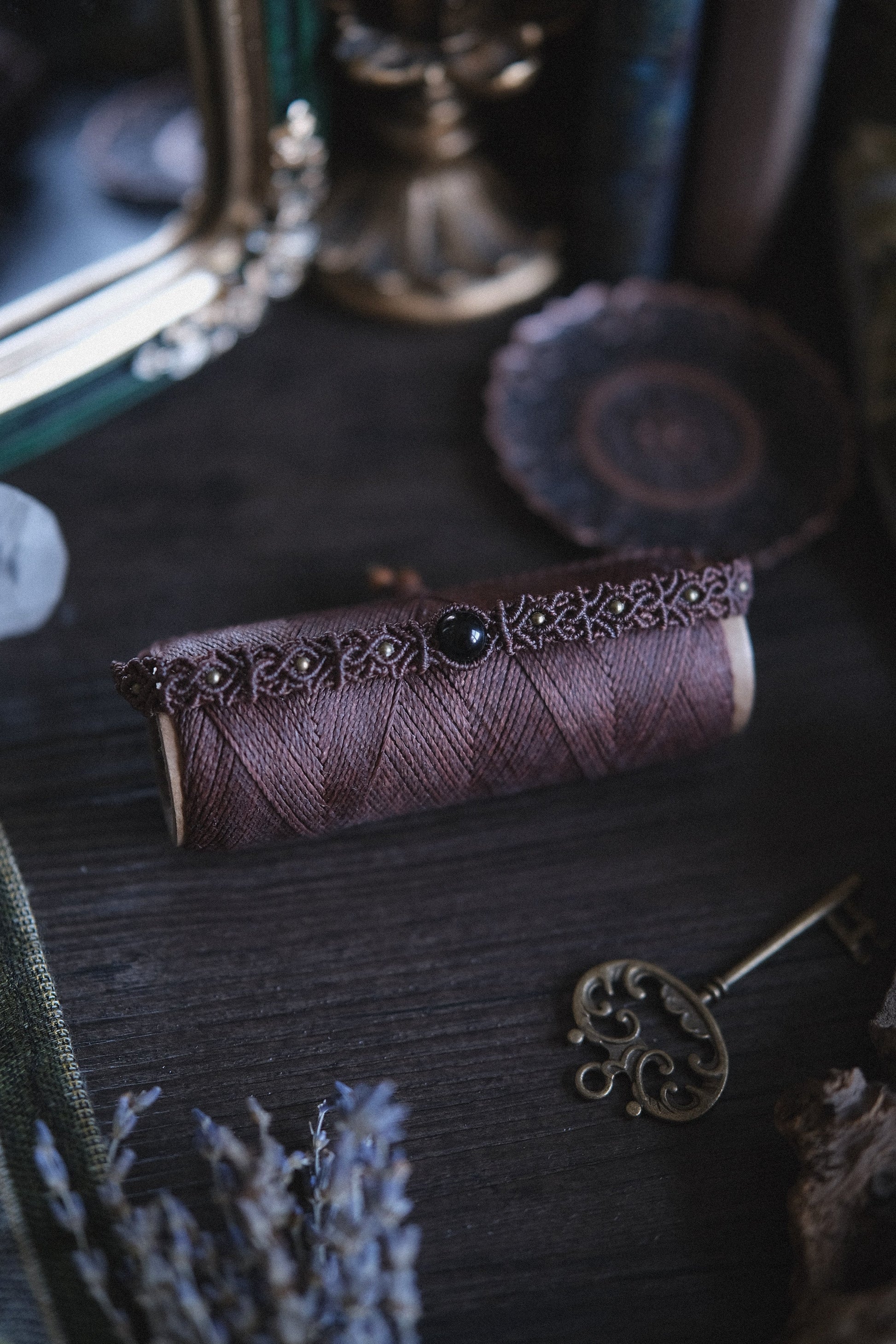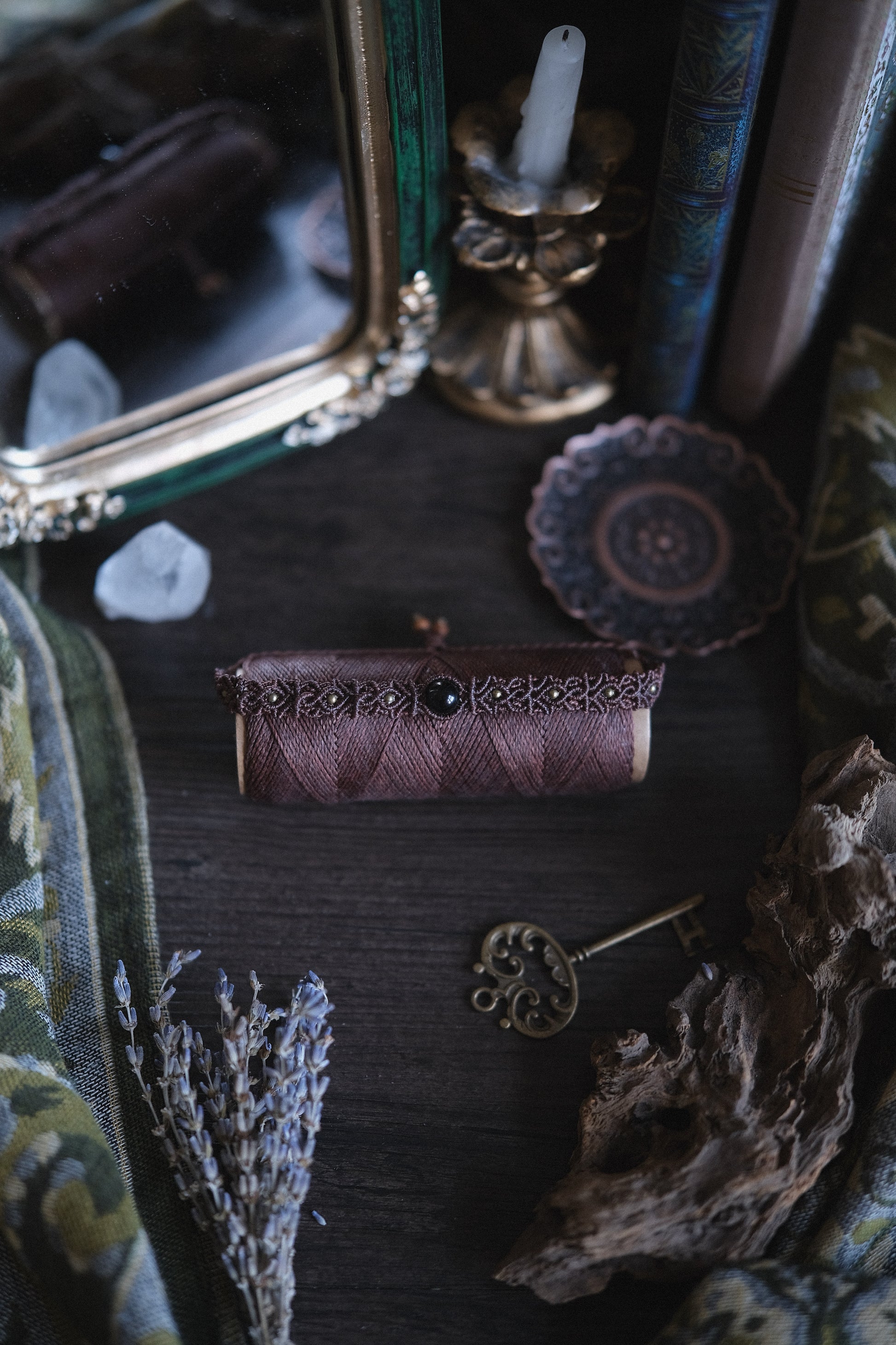 Bradicale modello ‘Rowan’ realizzato interamente a mano con la tecnica del macramè, con pietra naturale di Ossidiana